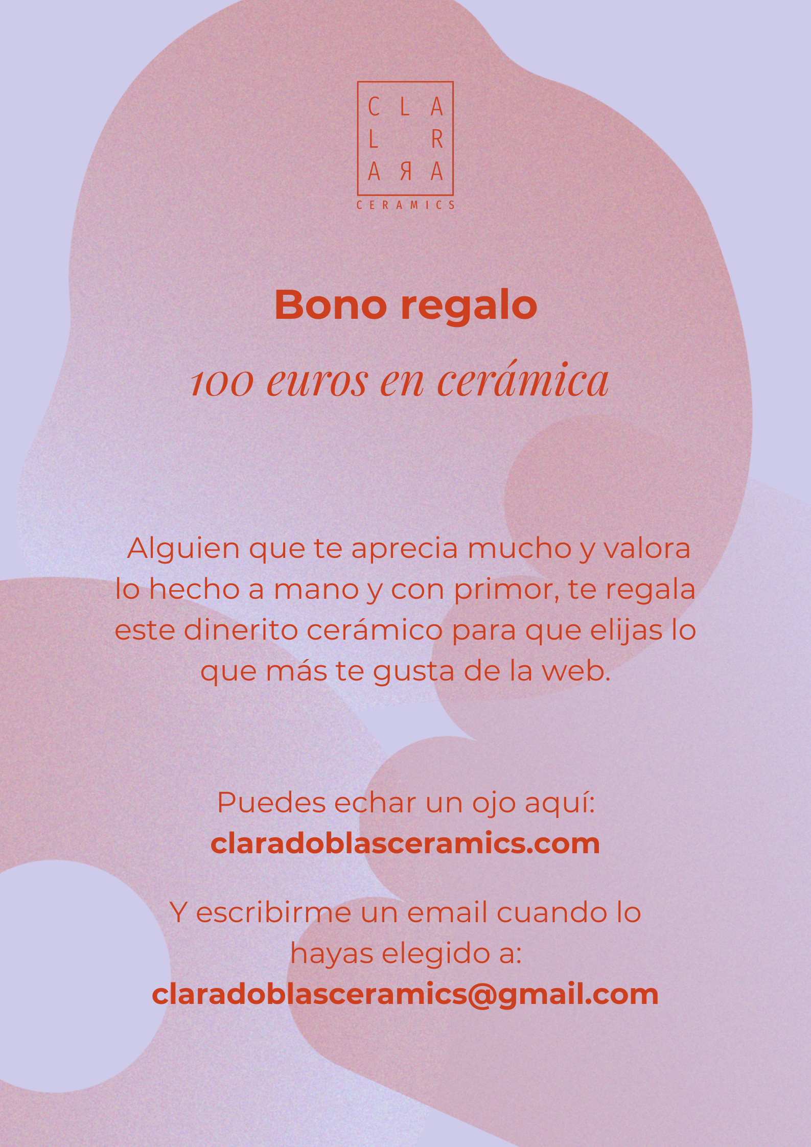 Si quieres que te envíe un vale personalizado escríbemelo en comentarios al realizar la compra o escríbeme un email a claradoblasceramics@gmail.com